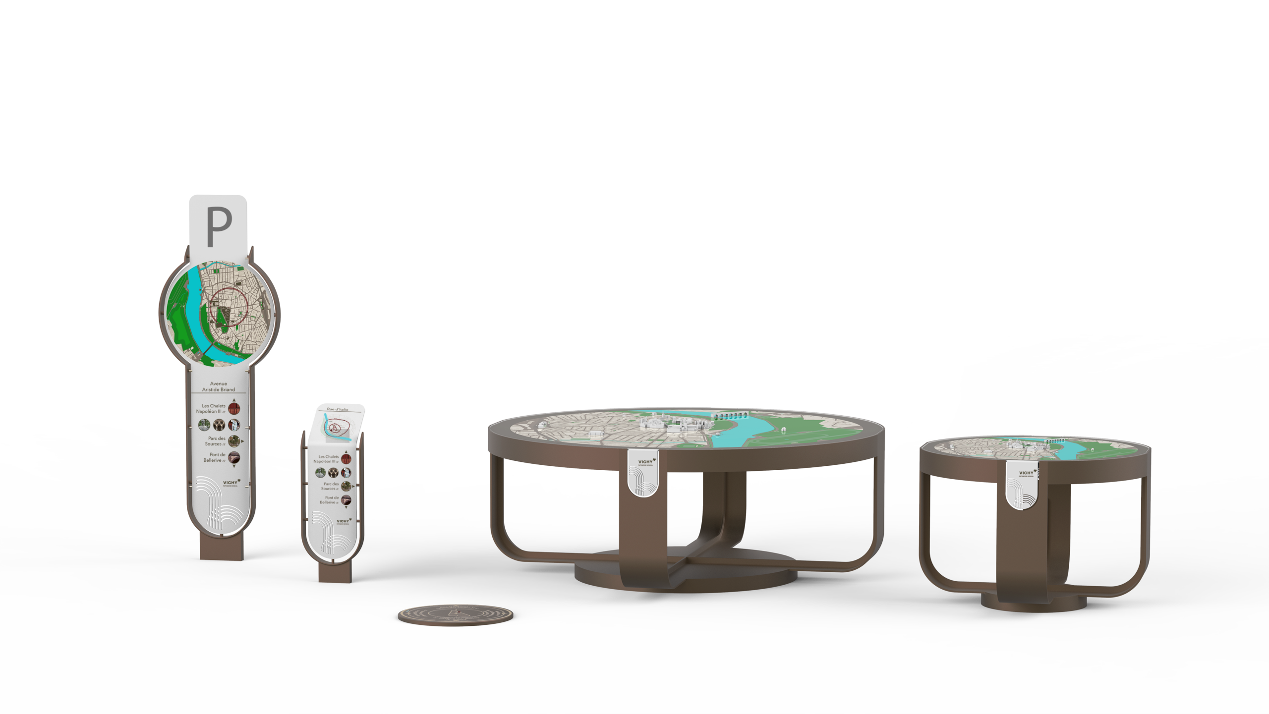 Forte d’un patrimoine exceptionnel et de son inscription en 2021 au titre du bien en série transnational des “ Grandes villes d’eaux d’Europe ”, la ville de Vichy a souhaité développer une signalétique cohérente pour valoriser les lieux et sites emblématiques du coeur urbain, en se concentrant sur le périmètre du bien et la zone tampon.